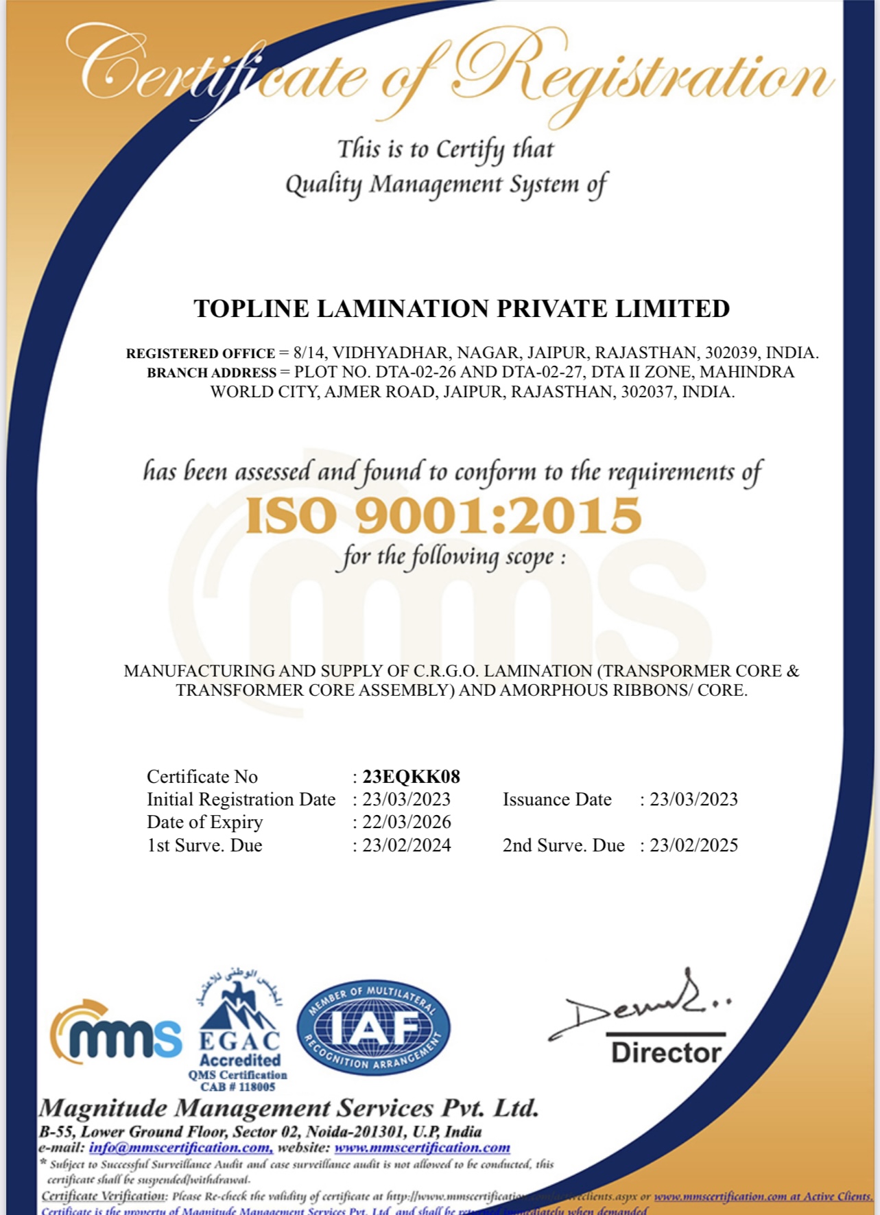 Quality is not just measurement but a way of life. Based on Modernized machinery, Top Notch infrastructure and Technical expertise, we emphasize on quality along with the quantity.Quality systems existing at Topline Lamination Pvt. Ltd. comply with the requirement of International standard systems. To achieve the objectives of the quality policy, company plans to implement & achieve Total Quality Management. Quality checks have been introduced at various work centers of the company under the guidance & expertise of Certified Quality Management Consultants. Persistent follow up by management, internal/external audits and relentless efforts on the part of employees have paid rich dividends. Working in accordance with quality systems has now become a way of life at Topline Lamination Pvt. Ltd. Transformer lamination needs a high degree of precision, which necessitates the use of highly specialized CNC machines.Topline Lamination have ISO-9001:2015 | ISO 45001:2018 |ISO-14001:2015 certified facility, to perform transformer lamination. TI has 2CNC machines. A variety of shapes ad sizes of lamination may be processed using our CNC Cut to Length equipment.